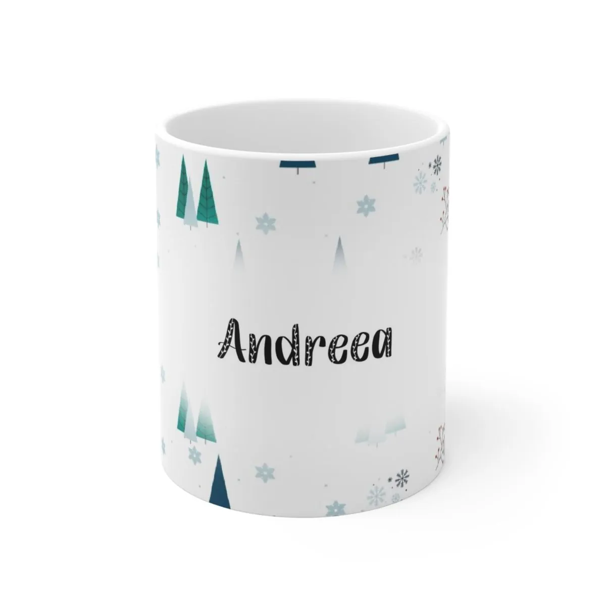 Bucură-te de fiecare înghițitură în timp ce intri în spiritul sărbătorilor cu această cană personalizată Christmas tree și nume! Aceasta aduce farmecul și căldura Crăciunului direct în măinile tale sau ale celor dragi în momentul în care se servește o băutură delicioasă și călduroasă!
