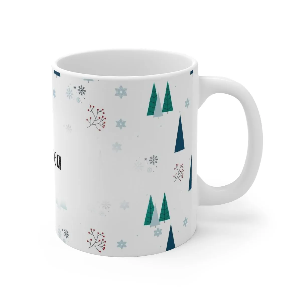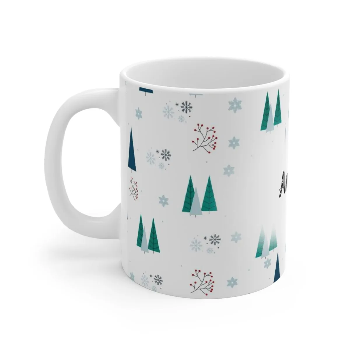 Transformă diminețiile într-o exepriență plină de bucurie cu această cană personalizată Christmas tree și nume!