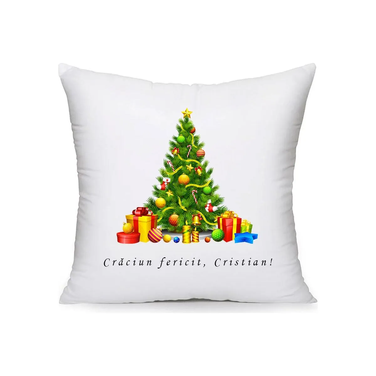 Perna personalizata Craciun fericit si nume 40x40 cm