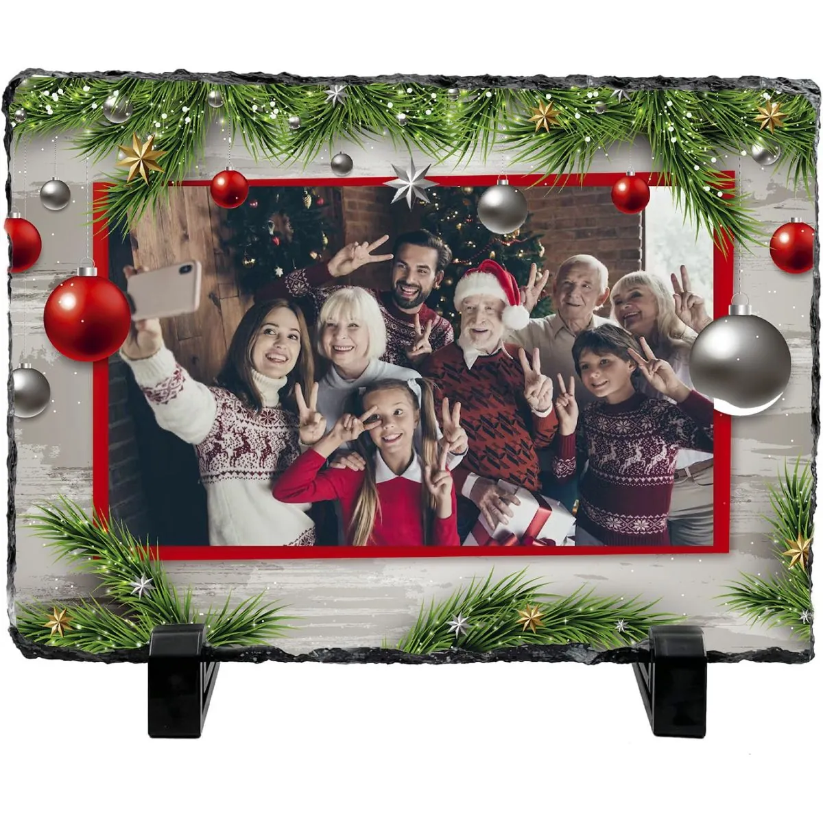 Placă de ardezie personalizată cu imagine family Christmas