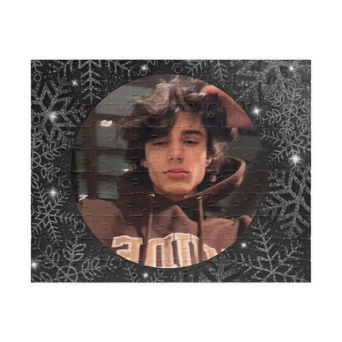 Puzzle personalizat de Crăciun cu poză, mărimea A4 210x297 pe fundal negru