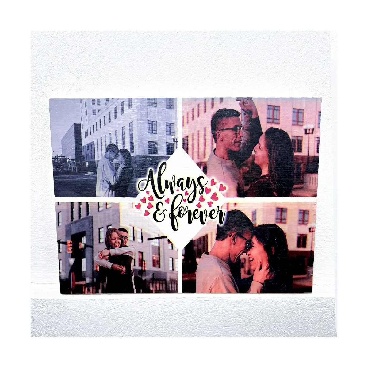 Tablou din lemn personalizat cu 4 fotografi și mesaj