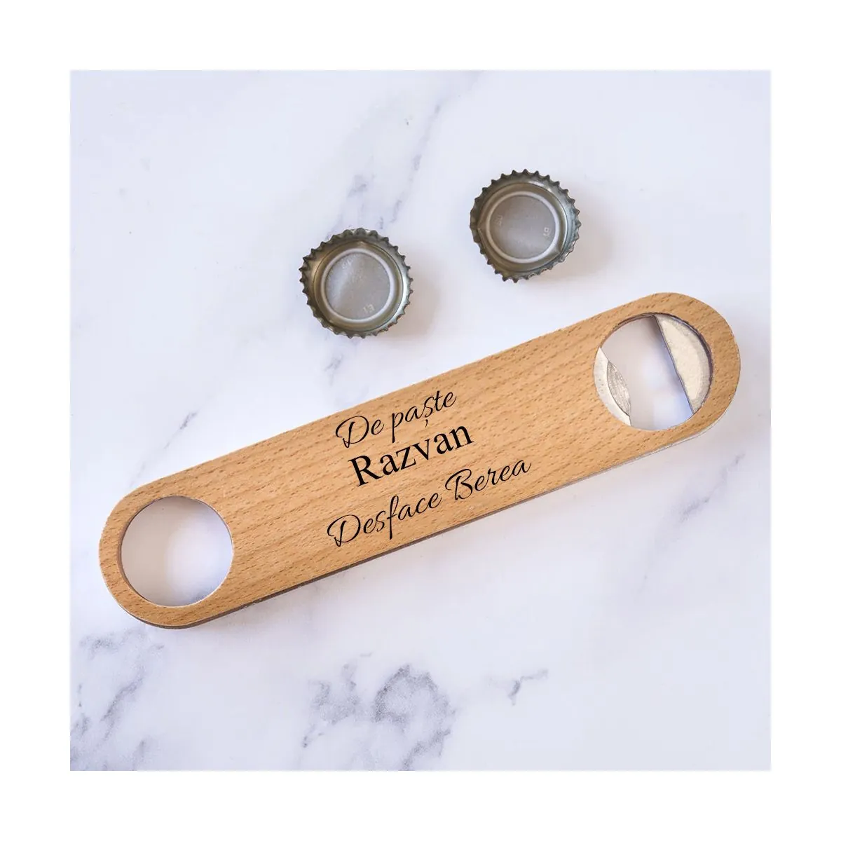Desfacator din lemn personalizat cu mesaj si nume.