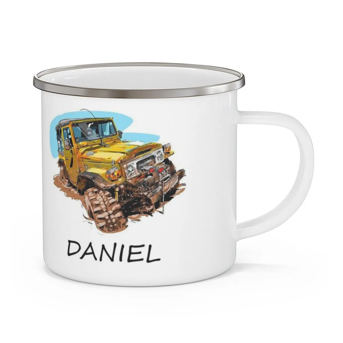 Cana metalica emailata personalizată offroad si nume este un cadou ideal pentru pasionatii de offroad!