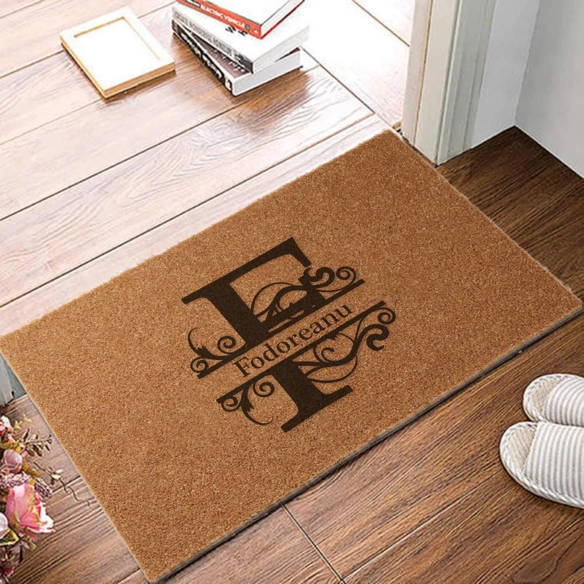 Covor intrare personalizat cu initiala F si nume