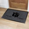 Covor intrare personalizat cu nume si desen familie 2 culori (maro si gri)