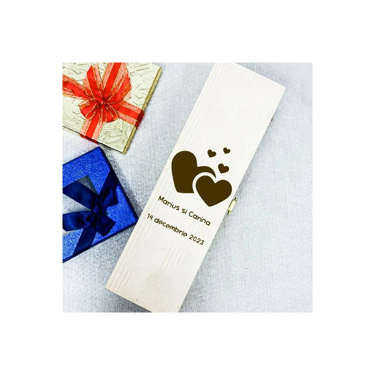 Impresioneaza-ți persoana iubită și achiziționează cutia de vin personalizată cu două inimi nume și dată!