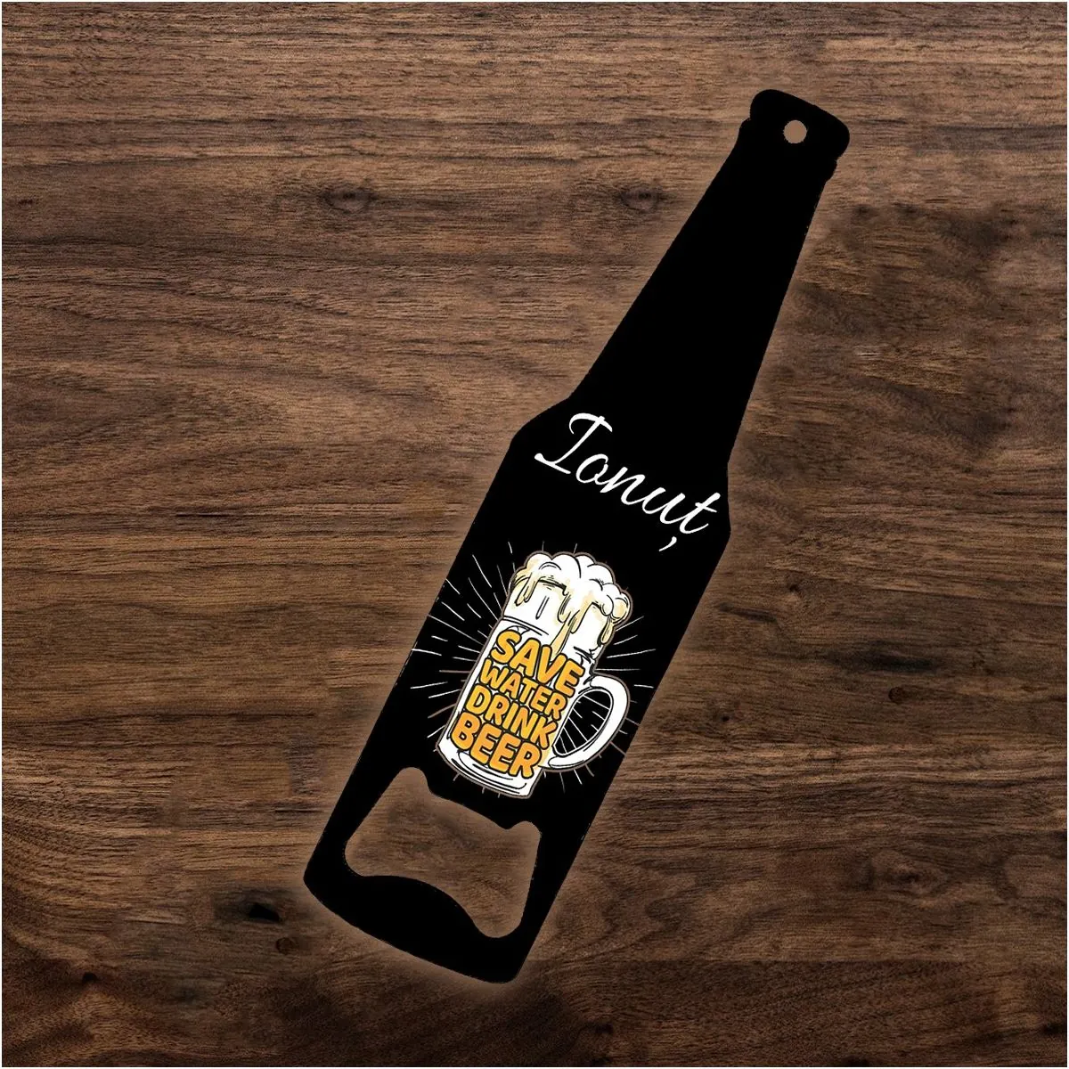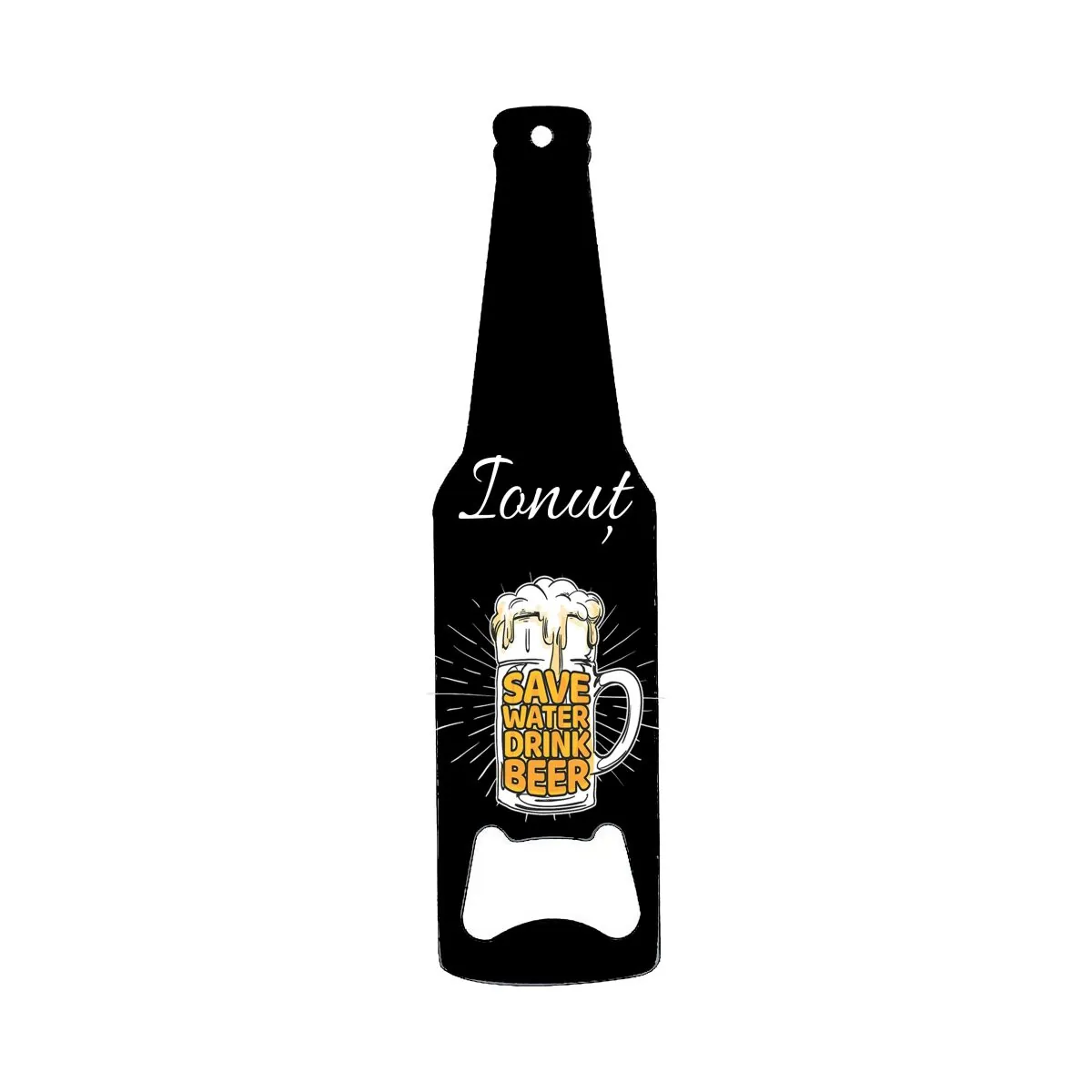 Desfacator in forma de sticla personalizat- drink beer save whater negru.