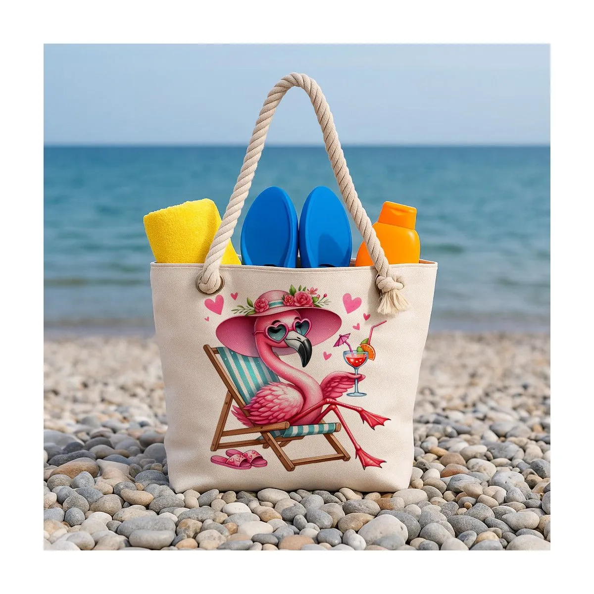 Geantă de Plajă Personalizată flamingo roz reprezintă stilu tău unic pe malul mării!