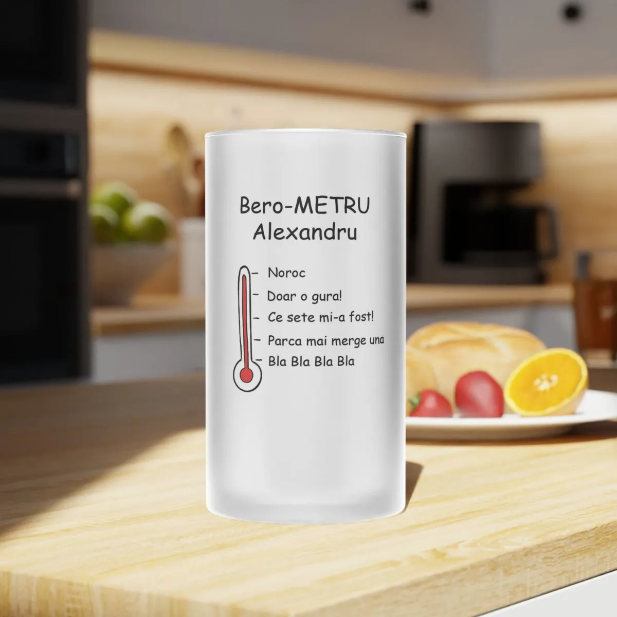 Halba de bere personasonalizată cu bro-metru și nume aduce un zâmbet oricărui sărbătorit!