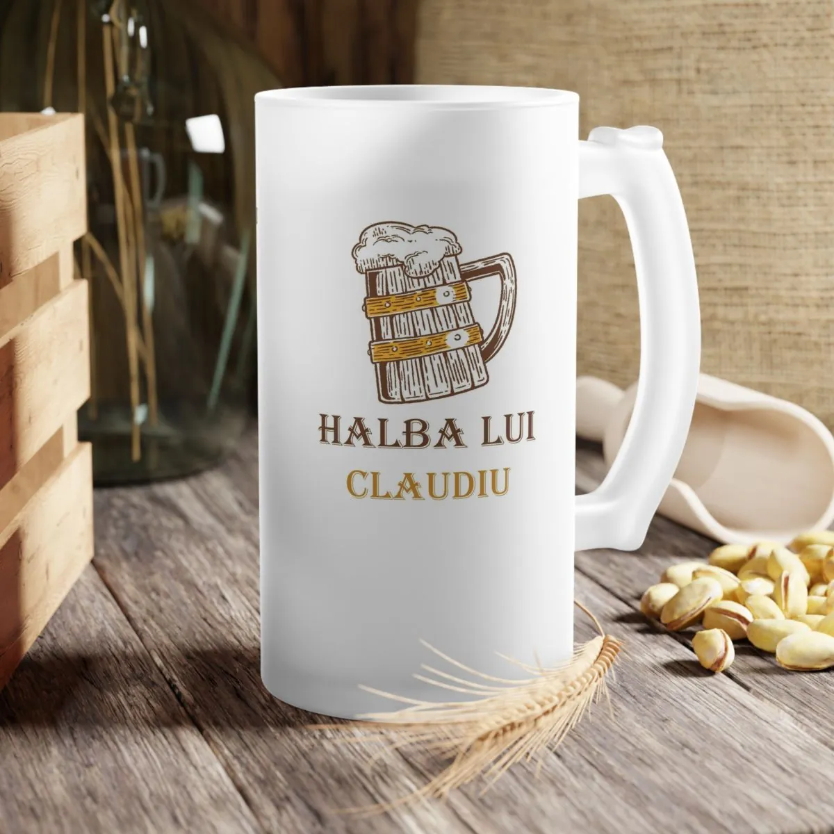 - Personalizare Unică: Adaugă o notă personală cu un nume și mesaj special, transformând această halbă într-un cadou memorabil sau într-o piesă distinctivă pentru colecția ta personală.